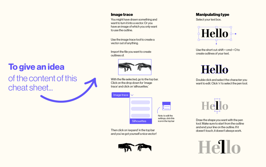 The cheat sheet contains 30+ Adobe Illustrator resources: