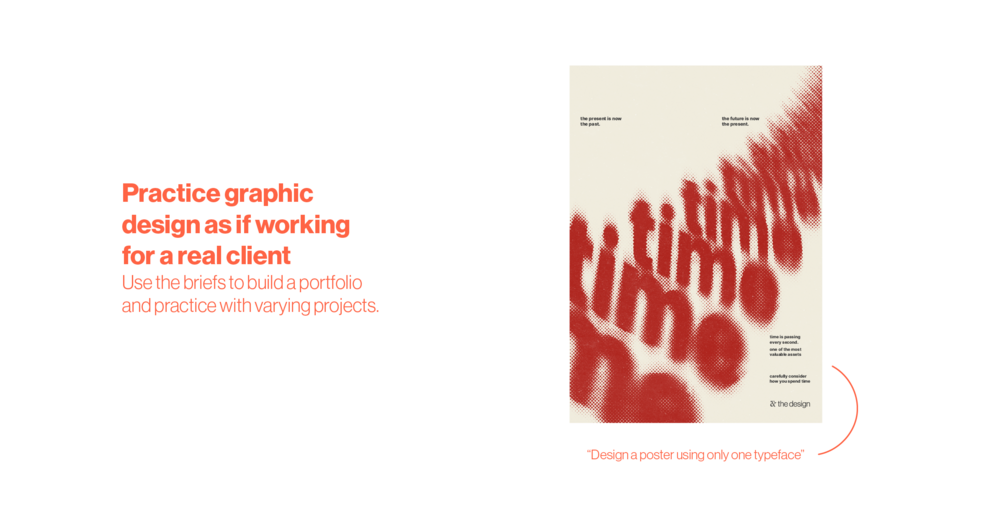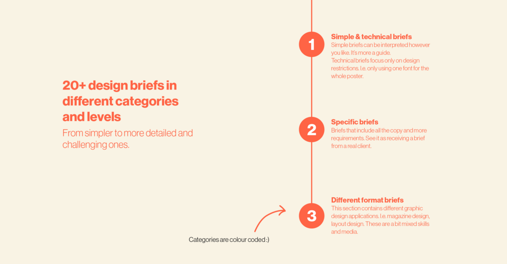The briefs allow you to practice design as if you are working for a real client. Some clients will give more specific directions whilst sometimes they don’t have any idea of what they want. So the goal of these briefs is to push you in terms of design and work on various projects with varying difficulty.